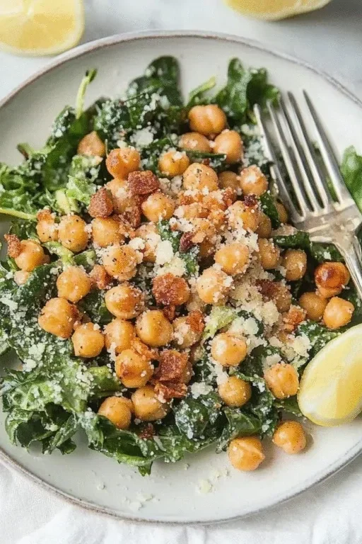 Kale Caesar with Roasted Chickpeas